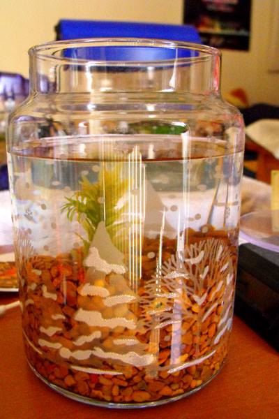 因為不能養在魚缸,所以就幫他多弄了一個小箱子